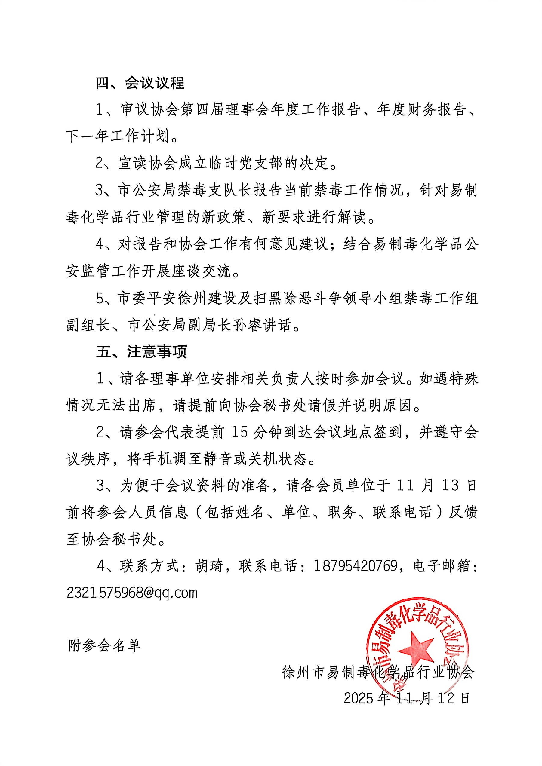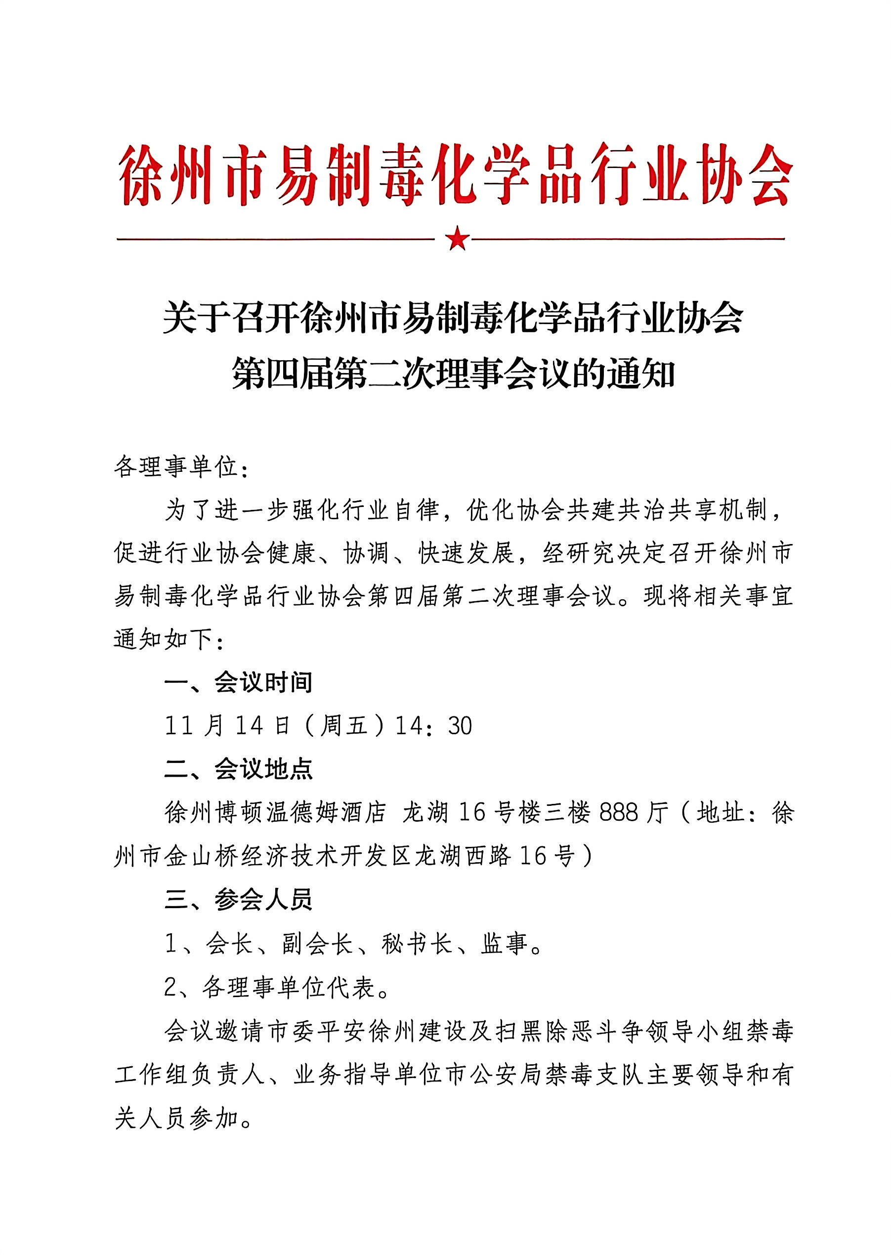 关于召开徐州市易制毒化学品行业协会第四届第二次理事会议的通知