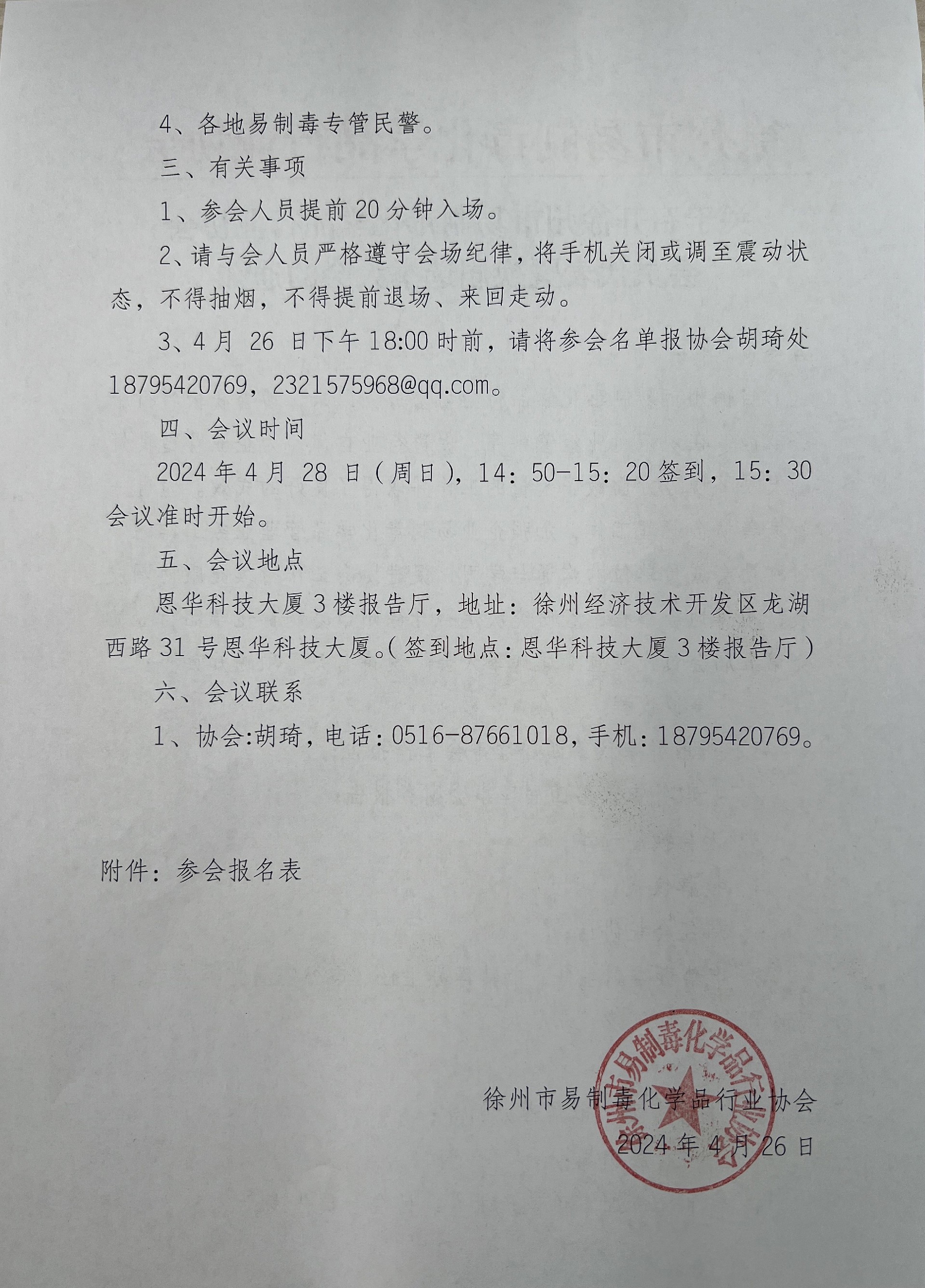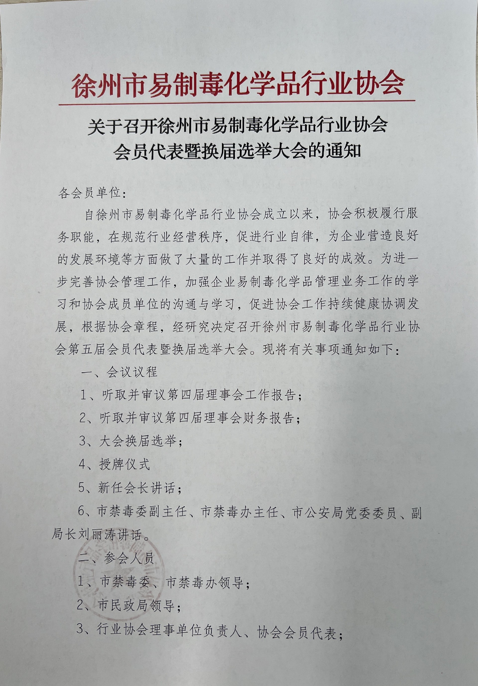 徐州市易制毒化学品行业协会会议通知